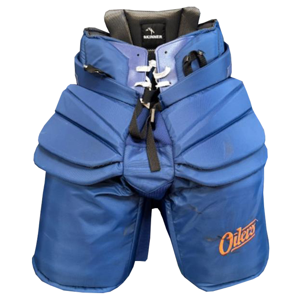 Goalies Plus was able to obtain brand a V10 Pro Carbon goalie pant from Vaughn’s Pro Department. These were made for Stuart Skinner for the Edmonton Oiler alternative uniforms. These have been used by Skinner in one or two practices.