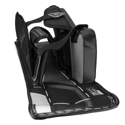 The Bauer Supreme is considered the “butterfly” style pad in the Bauer line. The Bauer Supreme Mack pad features an all new core called the Shocklite+ core. Bauer has done a tremendous job creating a pad that is rigid with a very active rebound yet the Mach goalie pad does not feel like a stiff piece of steel on your legs. The Supreme Mach pad has an L-Shape design with a single break below the knee that is perfect for a goalie with a medium to wide butterfly. Bauer also uses a CURV Composite material in the thigh rise of the Mach pad which keeps the thigh rise stiff and not does not become prone to becoming soft and sloppy over time.