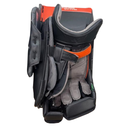 Starting with a new adjustable finger connection system. This allows for goalies to change the finger padding based on how a goalie holds their stick. If a goalie likes a squared paddle design, they can adjust the padding to work with a square paddle. If a goalie likes a steep paddle design, they can adjust the padding for a steep paddle.