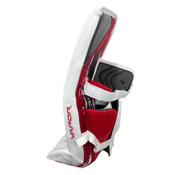 The new landing on the Vapor Flylite leg pads will come with less grip material than past models. Many goalies complained that the grip material hurt pad rotation, so Bauer has scaled that back for 2025.
