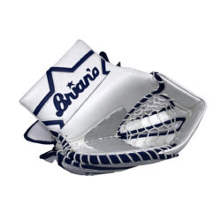 The Brian’s Alite catch glove is now available at Goalies Plus. Based off the Heritage series glove design, the Brian’s Alite provides the customer with a traditional feel at a mid level price point. Brian’s has always done a great job of making their mid-level catch gloves protect and feel like the pro custom gloves. The protection in the palm has a pro feel and has added protection that is not normally seen at this price level. Brian’s has gone with their trademark Thief double t pocket, distinguishable by the embroidered eyes on the outer t of the pocket. Brian’s uses the No Slip Grip material on the wrist and palm area of the glove. This helps the goalie get extra grip with the fingers when squeezing the glove or while stick handling. One non-traditional feature of this glove is the one piece design of the cuff. Most gloves today are a one piece design which does help with the long term durability of the glove.