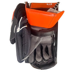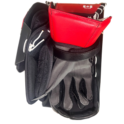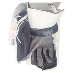 The X4 has an extra wide cuff opening which allows the goalies chest protector to integrate seamlessly with this blocker. The thumb area of the X4 has a removable pillow which provides extra protection but can also be removed at the goalie’s preference. The palm on this blocker has a reinforced palm that is both durable and comfortable.