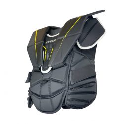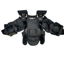 The new CCM Axis A1.5 Junior Chest Protector is a completely redesigned junior chest protector.  The CCM Axis line is the next generation of the Premier series with some great changes for 2020.  The new Axis chest protector took the size and some of the adjustable features of the Premier but added a whole new level of mobility. Now a goalie can enjoy the size benefit of this chest protector but actually be able to move freely – particularly in the in the arm area.  There are many new features of the Axis A1.5 junior chest: