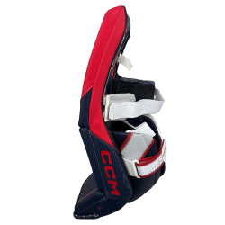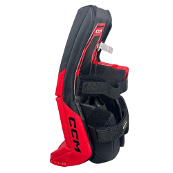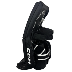CCM will continue to use the Quick Motion Strapping System with a new feature for 2024.  The strapping system now has a large range of adjustability compared to past models.  Now a goalie can customize the strapping system to their particular needs.