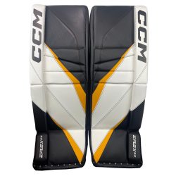 Goalies Plus is back with our Special Edition version of the Extreme Flex E6.5 junior leg pads. In previous versions of the Extreme Flex series, we done a double break version. For 2023, we have kept with that theory but with a new twist. The CCM Extreme Flex E6.5 junior pads will have a single break on the vertical roll however there will be an internal double break. Because the CCM logo is located on the top of the vertical roll on the E6.5 junior pads, we could not have an external break at the top without eliminating the CCM logo (CCM was not fond of this idea). So, we choose to keep the top break internal so the look of the pad would not have to be altered. The break at the bottom of the knee will still be the traditional external break on the vertical (outer) roll. The double internal break still performs like our traditional double break of years past,
