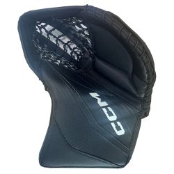 Also new is the addition of heat moldable foams to the palm of the CCM Extreme Flex E6.9 catch gloves which allows for easier break in and a more personized fit. On the backside of the catch glove, the strapping system has been redesigned to allow for greater adjustability to the back goalies hand and fingers. CCM will continue to use the FlexMotion Design which is a segmented HD molded foam in the back hand. So what does that mean? It means that the backside of the Extreme Flex E5.9 is flexible without losing protection. By making the Extreme Flex E6.9 flexible on the back of the hand combined with a wide and flexible wrist cuff, the E6.9 combines puck catching performance as well as control in stick handling and shooting techniques.