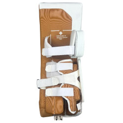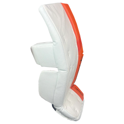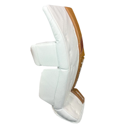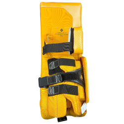 On the backside of the pad, the 7X4 uses a nylon knee and leg channel. This helps maximize pad rotation in and out of the various butterfly techniques. The knee channel also has a wide design to accommodate various goalie knee guards.