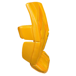 On the Goalies Plus Special Edition Series, we choose to add a single break on the outer vertical roll to add flex to this pad. With a single break design, the break adds a flex point that is not there on the stock version. The Junior HZRDUS 7X4 pads have a lower density foam design which gives the pad much more flexibility than the Senior & Intermediate. Flex is extremely important for a young goalie compared to taller and older goalies. The lower density foams and the single break gives the pad extra vertical and horizontal flex. Because the goalie is small in size, stiff pads bind the goalie up and limit movement, with more flex; the goalie moves much more freely around the crease and in and out of save techniques. A taller and older goalie can use stiffer pads because they are taller and stronger – therefore dispersing the stiffness in many ways that a young goalie cannot.