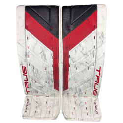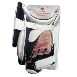 Goalies Plus has a used set of Louka Cloutier Pro Return goalie leg pads, blocker & glove. These are real pro return pads that were actually built and used by Louka Cloutier. Pads are marked up by still in great condition, the core is still very stiff. Blocker and glove are puck marked but in very good condition. No holes in the blocker palm.