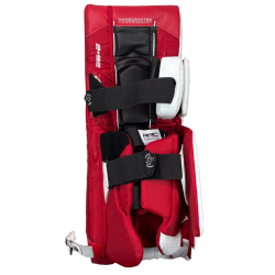 The calf cradle area of the Classic Series goalie leg pads has a completely new calf wrap design. Today’s goalies want the pads to be secure to their legs more than in the past, The Classic Series has a full wrap around inner calf wrap. This inner calf wrap is integrated by two professor straps – one at the top of the calf and one at the bottom of the calf. This inner calf wrap is completely adjustable to a goalie’s person preference. This new inner calf strapping system allows the pad to be worm snug on the goalie’s legs (if preferred) but does not compromise pad rotation in any way. The calf system is also designed with a thicker middle wrap to help distribute the goalie’s weight evenly along the lower leg while in the butterfly technique. We have found that goalies who want more ankle mobility have removed the bottom professor strap.
