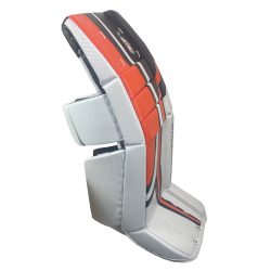 The strapping system of the Velocity V10 has been changed as well from the V9. The RRC strapping system has been thinned out to help eliminate any interference between the straps. There is also a new inner and outer option to lock into the shin area. The new inner option really locks the shin into the pad for goalies that want that tight fit. The traditional outer option will remain for goalies that liked the feel of the Velocity V9 shin area. The coverage around the back of the legs has also been extended.