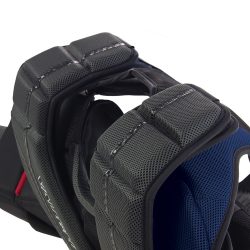 For overall protection, the Velocity V10 Pro Carbon uses high density HD foams in all major impact areas – including the neck piece. Full wrap around protection in the stomach and rib areas maximizes protection. The protection also covers the strapping clips to prevent any pucks breaking a clip during play. The bicep and forearm areas have been reinforced to eliminate the stinger issue in the arms that older Velocity chest protectors were known for. The arms have also added more protection around the back of the arm to eliminate any exposed area on the side of the arms. A large back plate that consists of high-density HD Foams protects the goalie’s spine.
