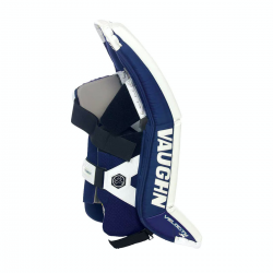 Some other new features on the Velocity V9 leg pads are the addition of Quick Slide material on all stock models. The Quick Slide material was a huge success on the Vaughn Ventus SLR2 goalie leg pads and is now a stock option on the Velocity V9. The Quick Slide material greatly increases side to side movement and makes bad third period ice feel like a fresh clean sheet of ice. Vaughn has also widened the leg channel of the Velocity V9 and extended the wrap around protection on the back of the legs. The knee landing area on the Velocity V9 has been lengthened. This helps provide a second level of coverage in the butterfly position and is especially helpful for shots that squeeze through the thigh rise while making a save using the butterfly technique. The lengthened blocks seal nicely behind the thigh rise and seal up these types of situations.