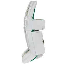 Some other new features on the Velocity V9 leg pads are the addition of Quick Slide material on all stock models. The Quick Slide material was a huge success on the Vaughn Ventus SLR2 goalie leg pads and is now a stock option on the Velocity V9. The Quick Slide material greatly increases side to side movement and makes bad third period ice feel like a fresh clean sheet of ice. Vaughn has also widened the leg channel of the Velocity V9 and extended the wrap around protection on the back of the legs. The knee landing area on the Velocity V9 has been lengthened. This helps provide a second level of coverage in the butterfly position and is especially helpful for shots that squeeze through the thigh rise while making a save using the butterfly technique. The lengthened blocks seal nicely behind the thigh rise and seal up these types of situations.