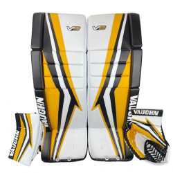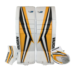 ![Vaughn Velocity V9 Pro Senior Goalie Equipment Combo [Special Edition] - Image 8](https://www.goaliesplus.com/wp-content/uploads/2020/06/Vaughn-Velocity-V9-Goalie-Leg-Pads-White-SportGold-Black-2.png)
