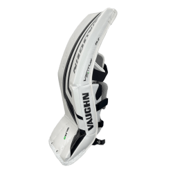 Some of the new features is the SLR2 pad are a stiffer section from the knee up which allows for greater coverage in the butterfly position by keeping the thigh rise rigid. From the knee down, the Ventus SLR2 pad has a softer feel compared to a traditional blocking/butterfly pad which allows for better movement and easier recovery techniques. The face of the SLR2 pad is very firm which allows the puck to rebound off the pad at greater distances compared to a traditional hybrid style pad. Also new on the Ventus SLR2 pad is the new inner edge material. Vaughn is now using a quick slide material on the inner edge, the knee landing and outer calf wrap. This quick slide material will greatly increase the side to side speed of a goalies butterfly slide. This material will help tremendously later in games when the ice is chalked up and slow. Another new feature of the Ventus SLR2 pad is the toe bungee system. For years manufactures like Vaughn have used skate lace to connect the toe of the pad to the toe of the skate. In recent years, after market bungee toe tie products have become very popular because they allow the toe of the pad to stretch from the toe of the skate with an elastic type effect. This stretching and recoiling improves the recovery process of a goalie but also takes pressure off the goalies ankles, knees and hips because it eliminates the quick stop and jerk process that skate lace has when it runs out of slack. The vertical roll on the SLR2 has also been changed for 2019. The vertical roll (outer roll) is now a triangular design which eliminates weight and increases rebound control. The last change we would like to mention on the 2019 SLR2 pad is the top binding. Just like on the 2018 Velocity VE8, Vaughn has gone to a more square and stronger top binding. This style binding allows for a stronger and tighter seal when the goalie is utilizing the butterfly technique.