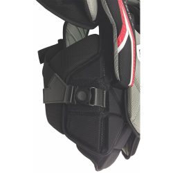 The blocking style chest protectors are built for the coverage goalies that like to play big and take up as much space in the net as possible. The shoulder floaters are much wider and usually have multiple layers. The arm and elbow guards are also flared wider to take up as much space as possible. The blocking style chest protector tends to have more gaps and extra space on the goalies body because of the extra size. The upside to the blocking style chest protectors is the extra space it takes up. These chest protectors can easily make the shoulder width of a goalie four to six inches wider compared to an athletic style chest protector. Also, since the arms and elbow are bigger, there are less gaps for the puck to squeeze between the goalies body and arms. The downside to these blocking style units is the lack of movement. Because of the extra bulk, movement can be compromised. You can’t have the best of both worlds, if you make it bigger it will take away mobility.