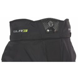 The Vaughn Ventus SLR3 goal pant offers a wider profile for added room and comfort. The waist features a larger upper waist section for a loose fit. Ventus SLR Pants give complete coverage and flexibility for improved body movement. Wide style thigh guards stay on the thighs and hang naturally to help fill the five-hole area. Large side thigh slash pads help to extend net coverage and increase the protected areas and square the edge of the pant and provide a stiff blocking surface. When comparing the Ventus SLR3 goalie pant to the Vaughn Velocity series, the Ventus is a longer and narrower (in the hip area) pant but still has maximum net/size coverage in the thigh area. We say it is longer because the padding in the kidney area goes higher then the Velocity pant. The Velocity pant is what we consider to be a barrel style fit that is wider and more loose fitting then the Ventus SLR3 and shorter in the kidney area.